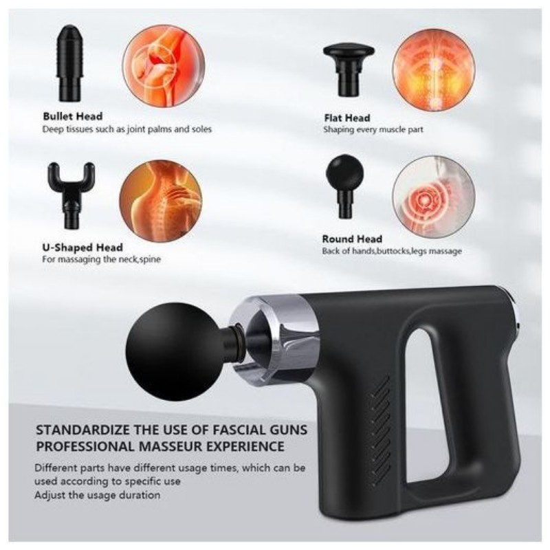 The Professional Percussion Massage Gun is designed to provide effective muscle relaxation and tension relief. Equipped with multiple interchangeable heads, it targets different areas with precision and ease, making it ideal for athletes and wellness enthusiasts alike.