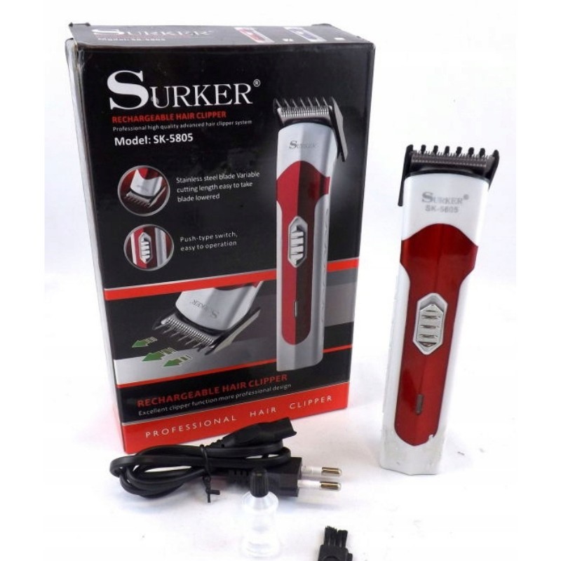 The Surker Rechargeable Hair Clipper Model SK-5805 offers a salon-quality haircut experience right at your home. Equipped with durable stainless steel blades, this clipper ensures a precise and clean cut every time. The variable cutting length feature allows you to achieve the perfect style, while the easy-to-use push-type switch streamlines operation. This hair clipper is not only efficient but also rechargeable, making it perfect for both home use and travel. It includes essential accessories such as a charging cable and maintenance oil to keep your clipper in top condition.